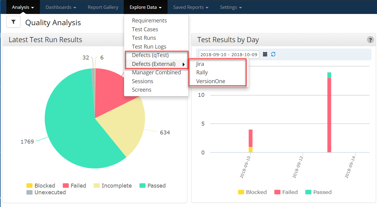 的见解允许您查看数据中创建的缺陷qt。或在外部ALM。缺陷中创建一个外部ALM可以是相关的qt或者链接。大多数的见解报告包含列qt或外部缺陷(或两者)和只会显示这些列如果有数据可用来查看。