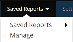 的保存的报告选项卡显示用户保存报告,便于访问和调度。这些报告的保存分析和探索数据报告,(不要与保存的混淆指示板)。任何分析或探索数据报告保存,将显示在管理窗口,打开一个新标签作为一个书签。