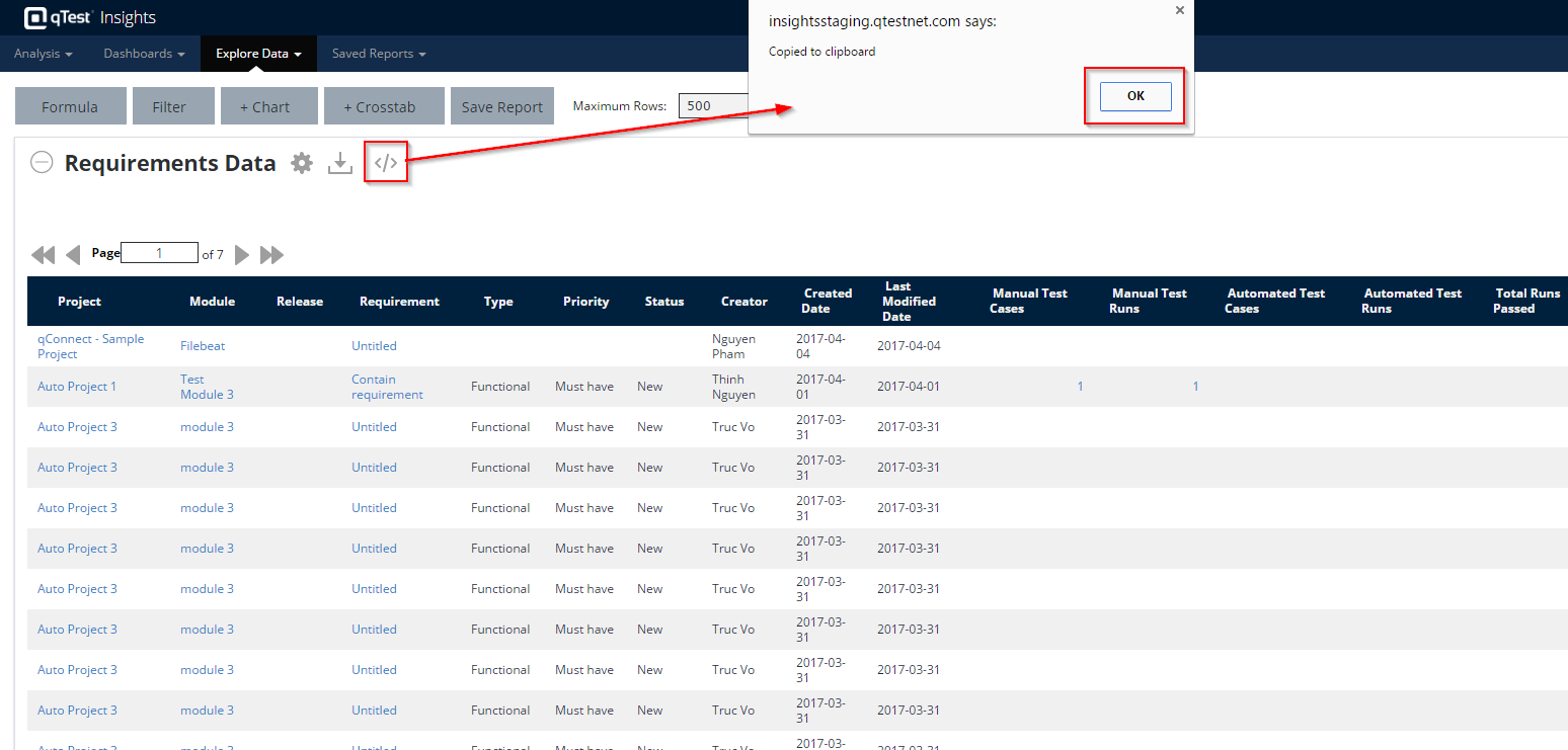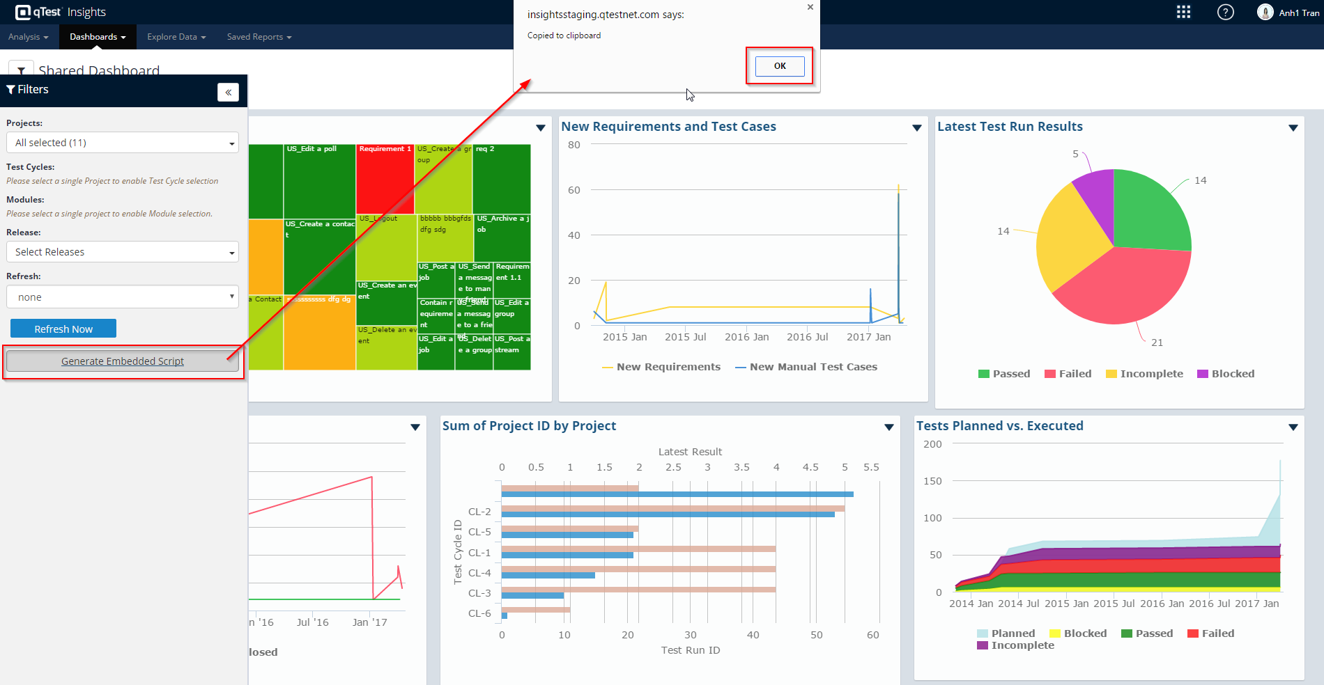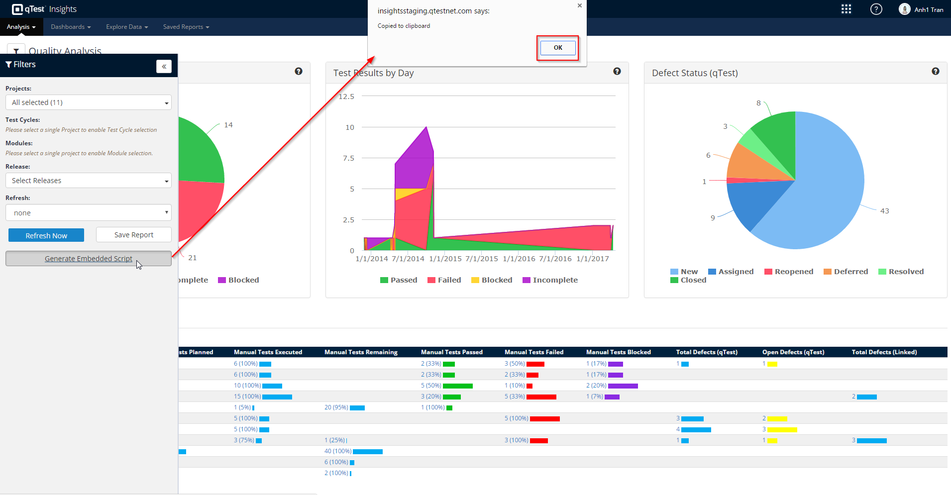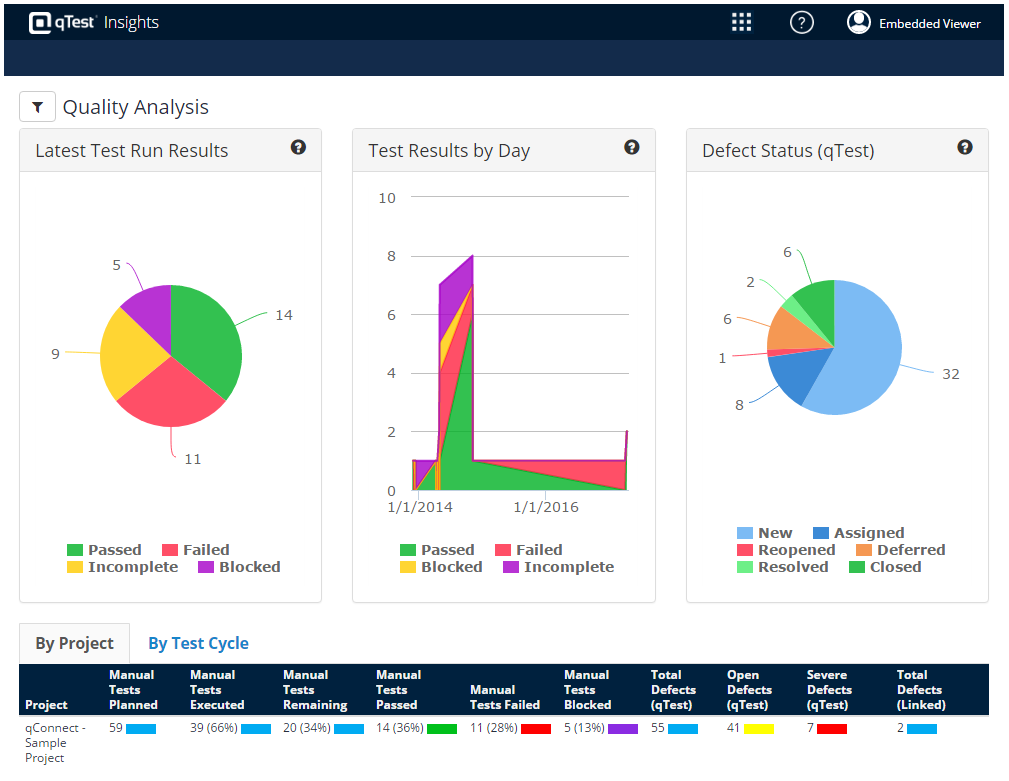 下面是截图的质量分析报告出现一旦其嵌入式脚本复制到一个网站。这个嵌入式报告仍将是静态的,因此用户将无法浏览其他特性/部分qt的见解或向下钻取到的数据报告没有qt许可证。注意:嵌入式报告的大小取决于容器在你的网站上,你可以调整它的欲望。