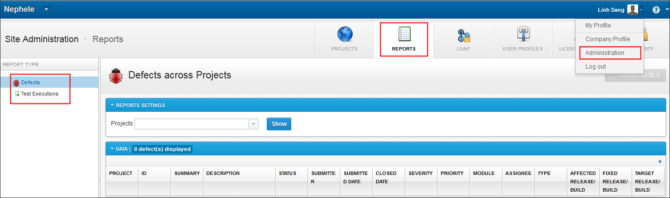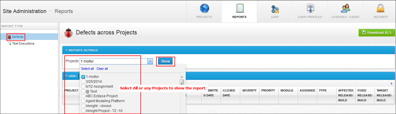 本报告为您提供详细的数据缺陷跨多个项目在报告运行时。按照以下步骤查看报告: