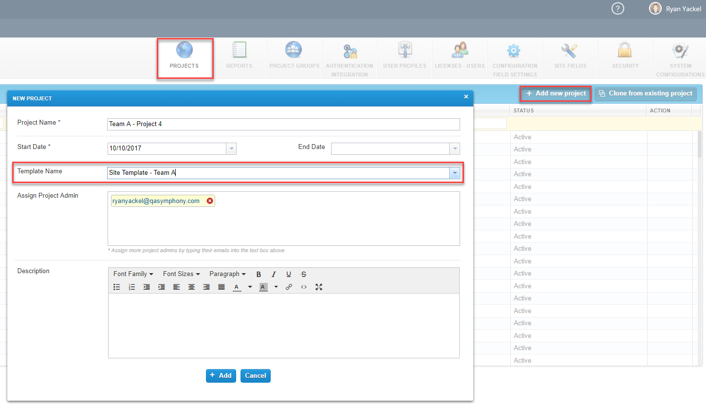 例如,我有标准化的三个团队项目,现在,当我添加一个新的项目团队,项目4,“我可以我立即标准化项目字段和值与模板称为“站点模板-团队A .”