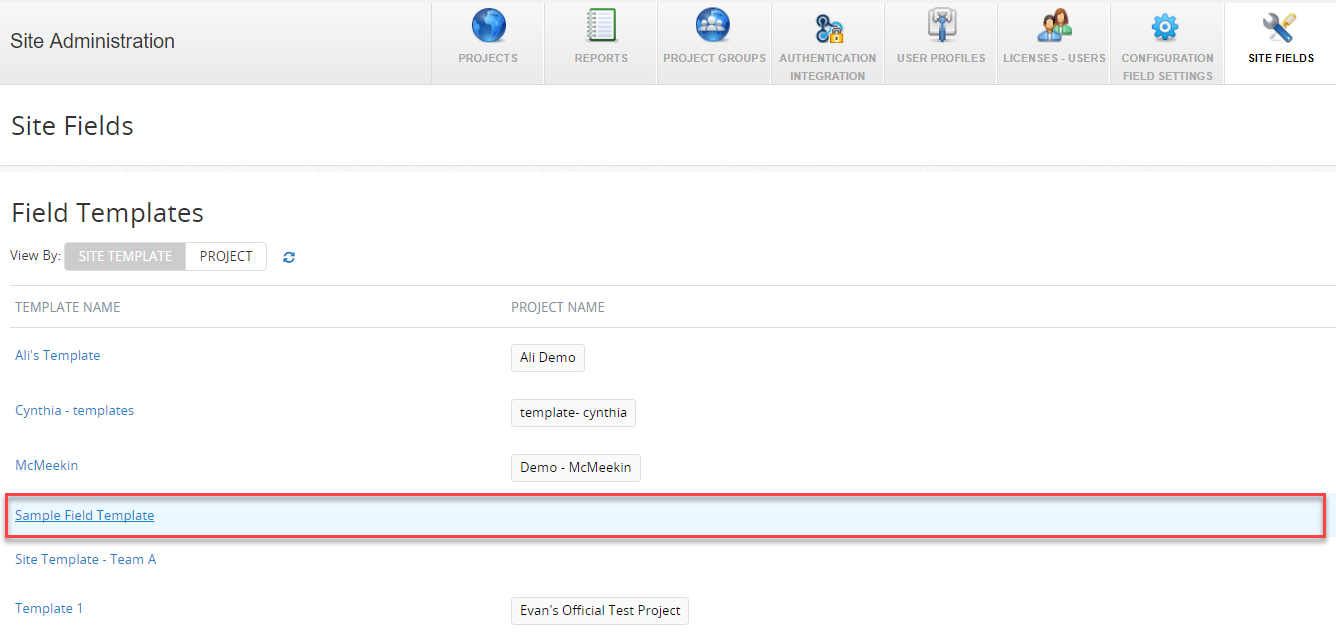 字段模板示例已生成的系统作为一个例子,如何使用一个字段模板。认为这是一个练习模板。默认情况下,字段模板示例包括所有系统字段和不与任何项目。但是,您可以更改字段模板示例(例如添加多个字段,修改模板名称)并应用到项目(s)试验网站领域特性。