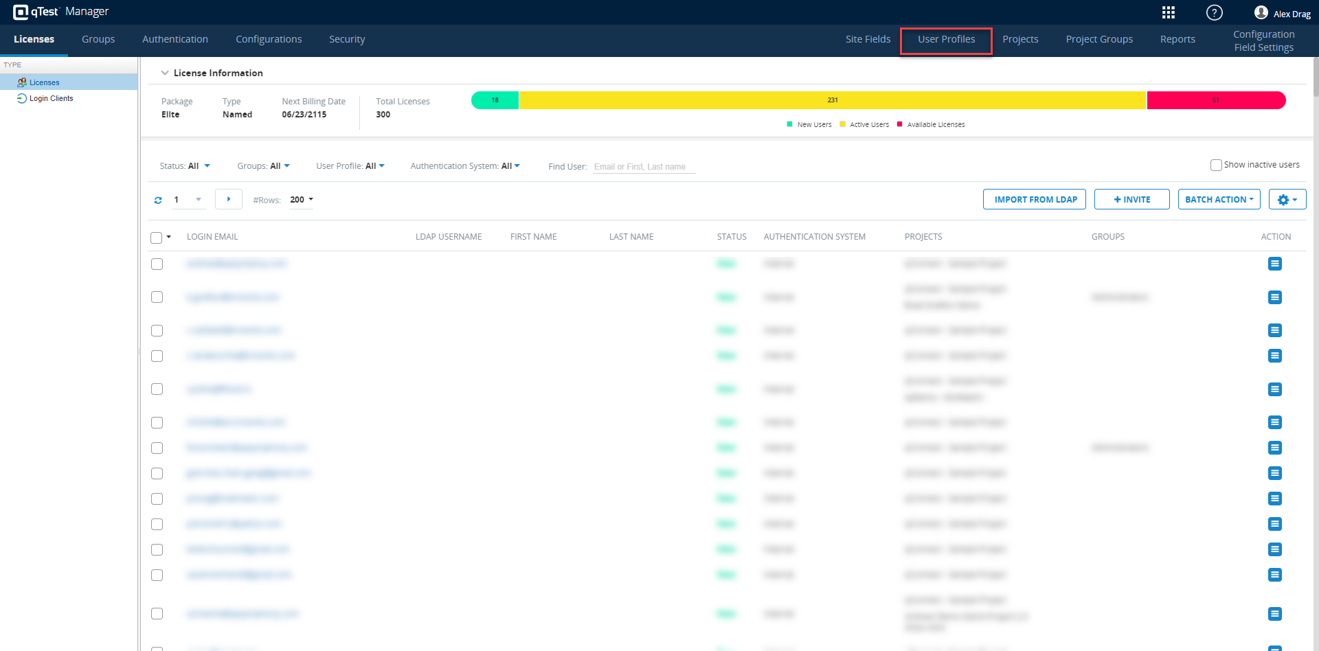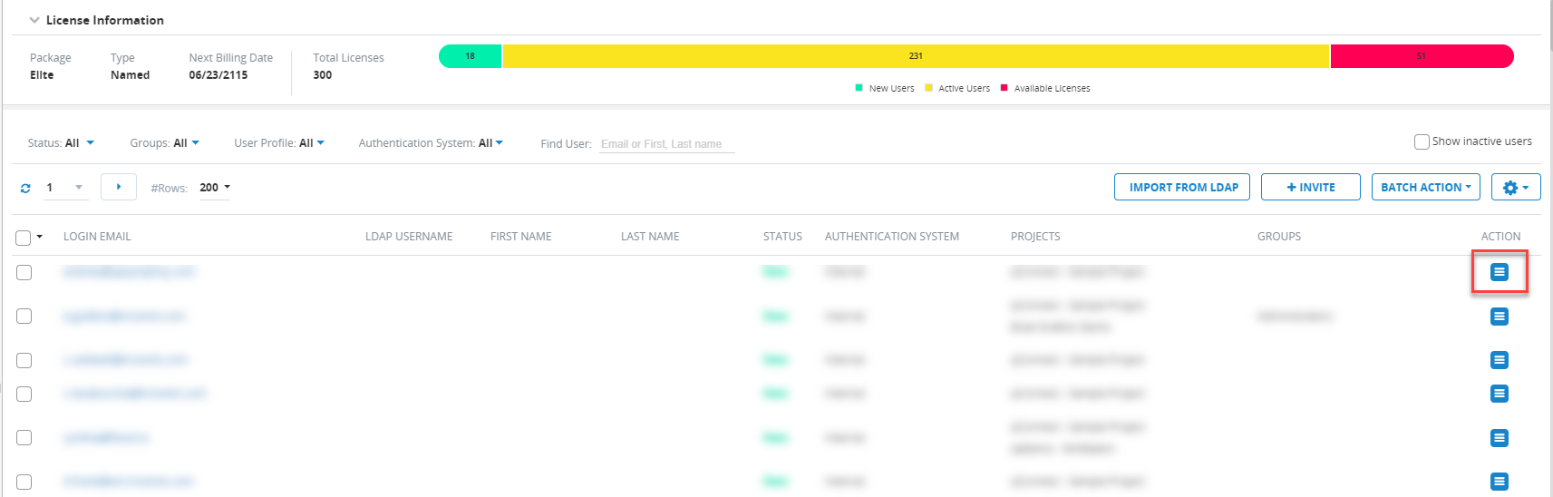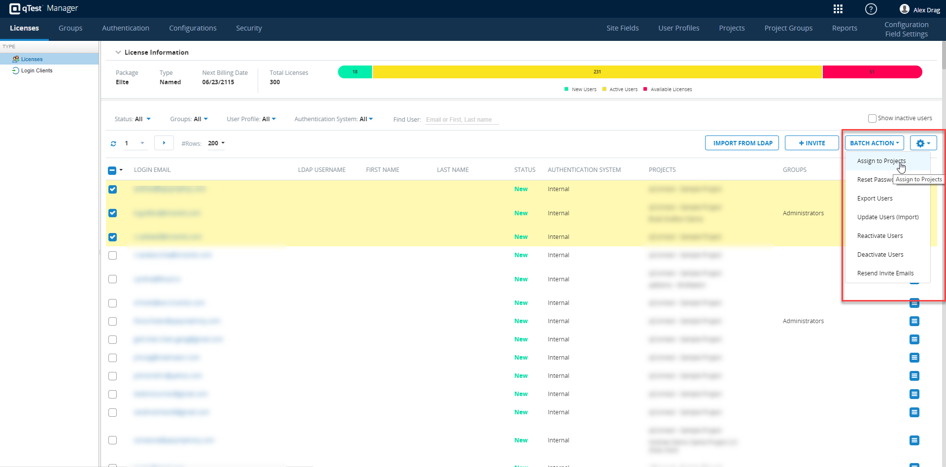 如果你想添加一个用户或多个用户,并分配到多个项目用户配置文件对于这些项目,您可以在这样做许可证选项卡。为此,遵循这些步骤: