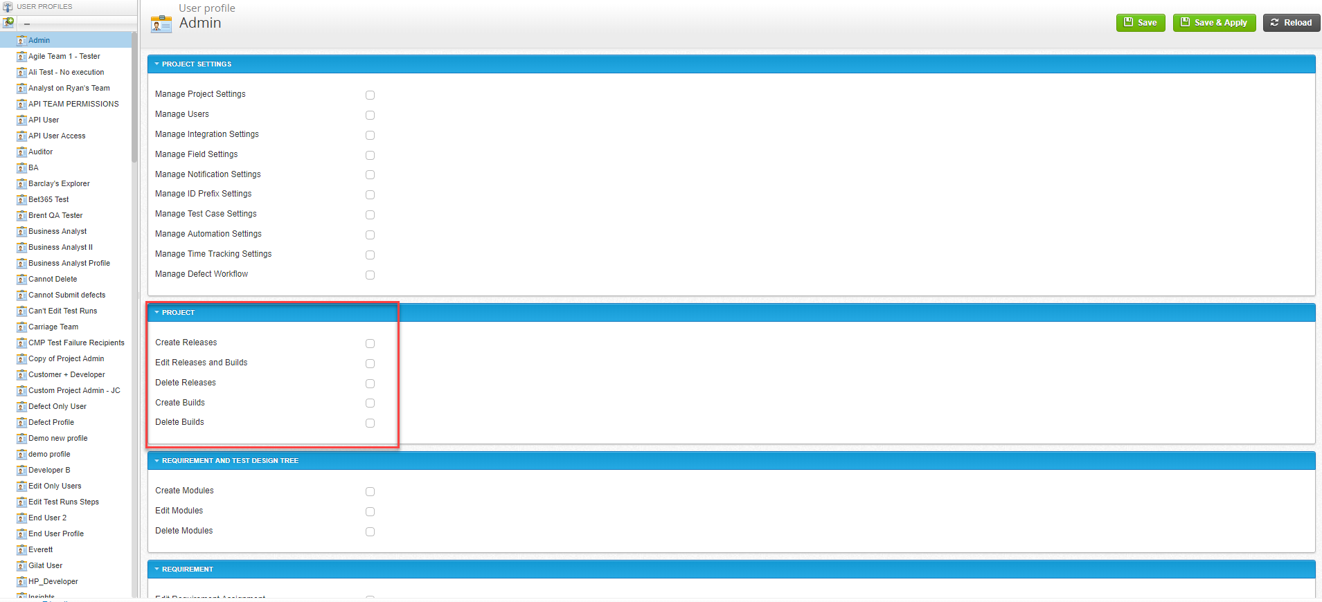 一个用户配置文件授予用户特定的权限在一个给定的项目,比如权限来创建一个测试用例或执行测试运行。
