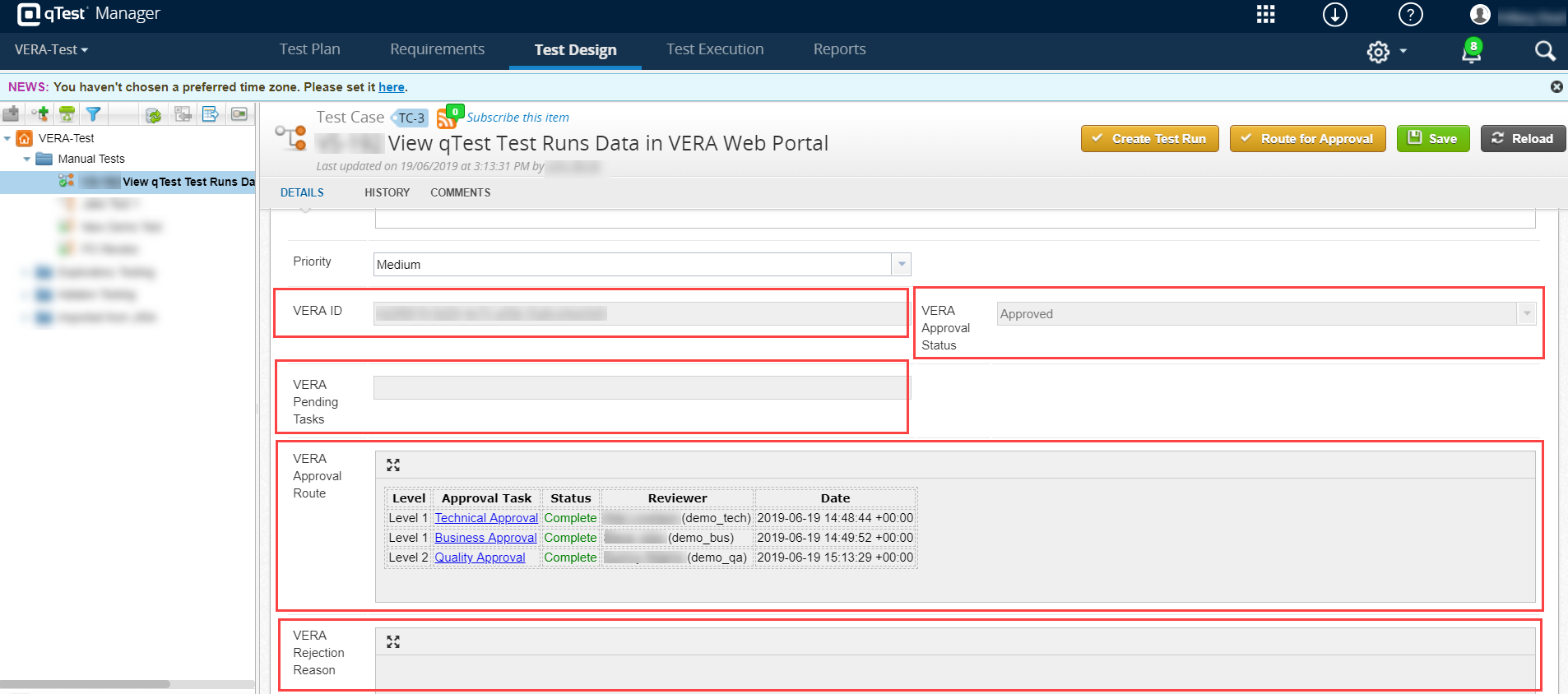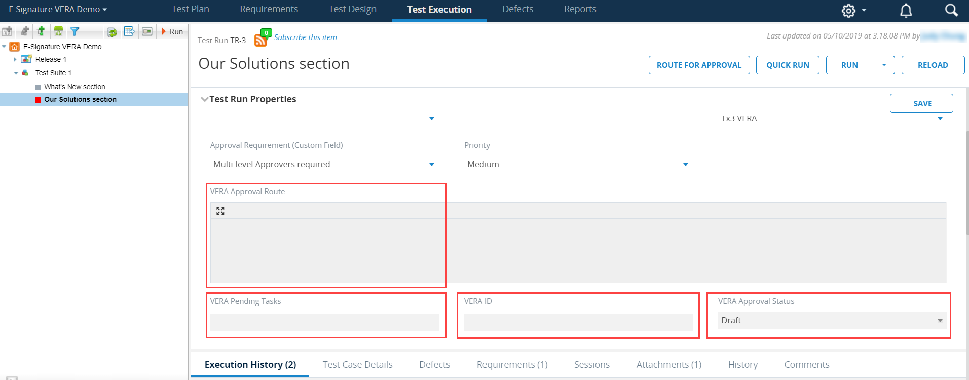 经理9.6.1:路线测试运行来维拉对电子签名后批准测试运行是执行。
