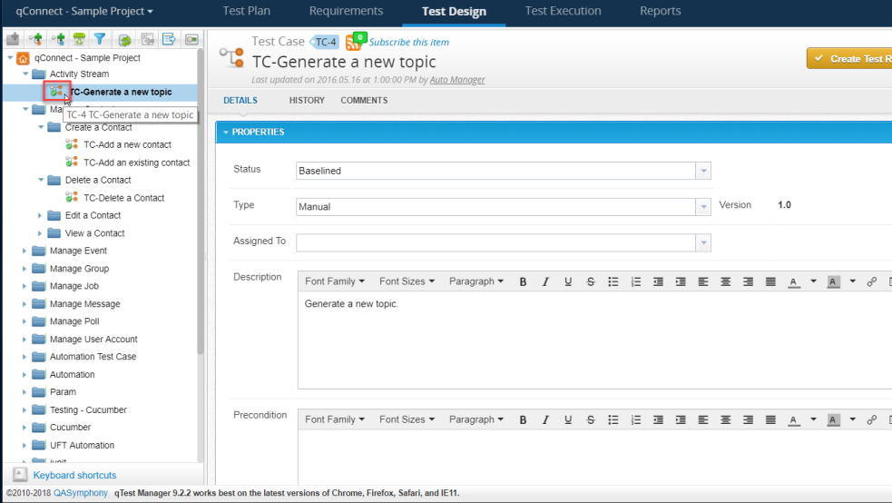 找到测试用例在导航面板内测试设计模块。你的测试设计模块将类似的逻辑分组测试用例。例子:测试用例为不同类型的用户登录屏幕。
