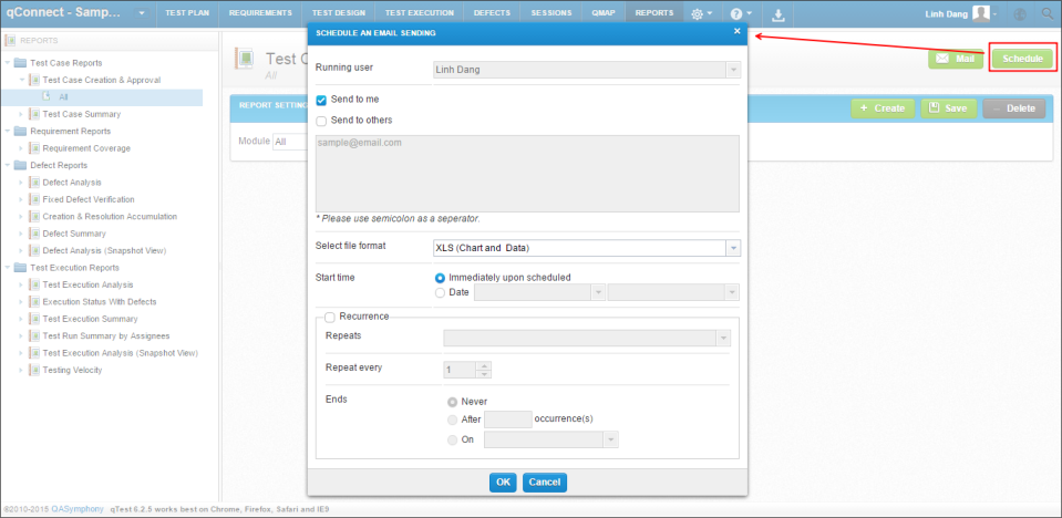 计划时间:所有最新的计划执行时间之和测试日志的测试运行选择报告的设置。