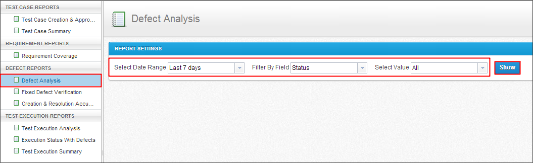 这份报告让你分析缺陷过滤通过各种标准在不同的时间范围,如状态,优先级,严重程度等等。你可以选择数据查看在最近七天,过去30天,一开始你的项目,或者一个特定的时间框架。报告图让你深入每年季度季度月,和一个特定的日期报告。