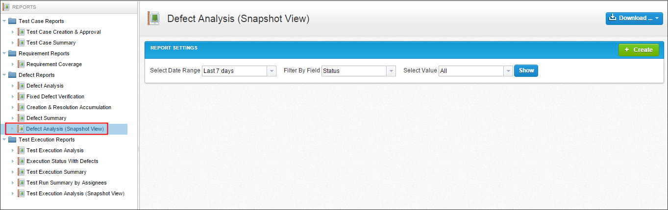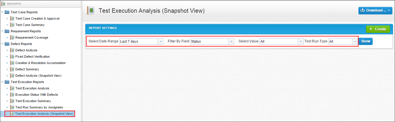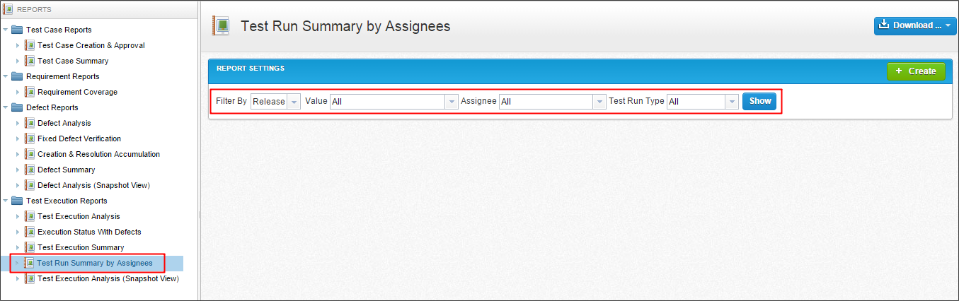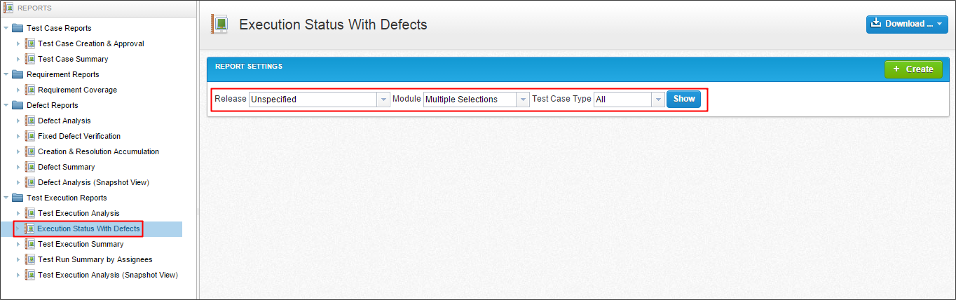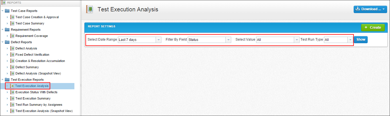 的数据网格包含所有的详细数据测试用例在选定的模块。您可以导出一个网格Excel文件。该报告可以导出到一个不同的格式等PDF,CSV,或XLS通过选择下载图标。