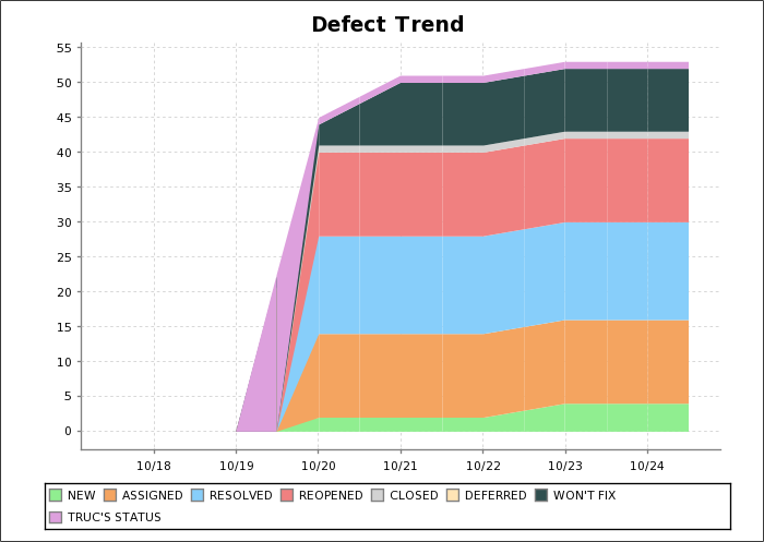 您可以检查报告数据的最新水平。这个表是自动更新,以反映的状态列图表。统计数据为一个特定的日期显示在图提供的快照缺陷州的日期。你可以点击每个日期细胞查看细节缺陷为选定的日期。