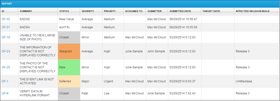 这份报告提供了缺陷在报告运行时细节。可以筛选的报告缺陷的提交日期和其他属性。