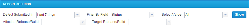 这份报告显示了怎样的一种趋势缺陷创建和解决。您可以定义状态代表缺陷创建和代表缺陷决议。该报告可以通过各种过滤字段和值在不同的时间范围。