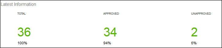 的最新信息部分显示当前数量的测试用例和多少人批准/未经批准的。