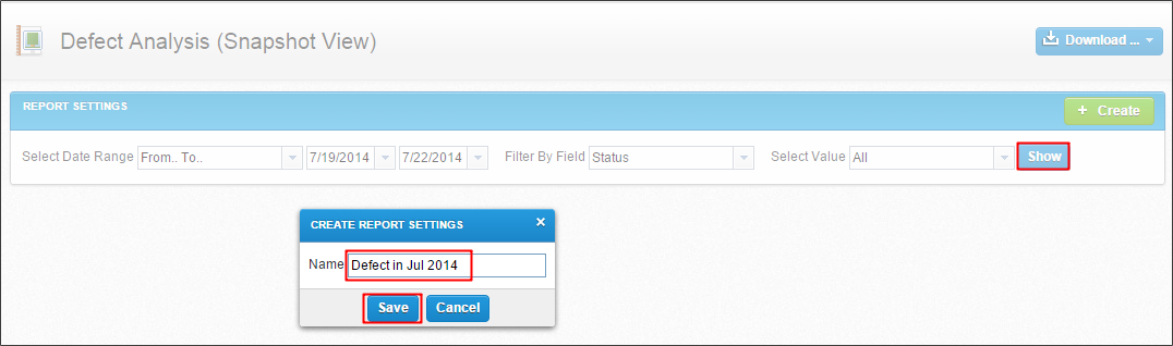 选择所需的所有过滤器后,选择创建图标保存设置。输入报告名称。保存设置以下列出相应的报告在左边菜单和共享整个项目团队成员以供查看。
