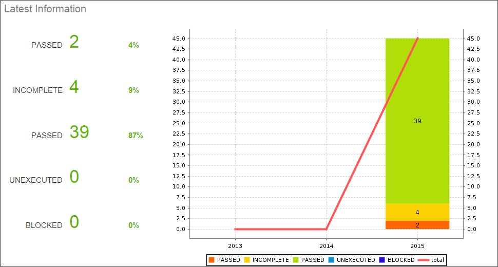 的最新信息部分显示的数量测试用例和执行缺陷相关的测试执行。