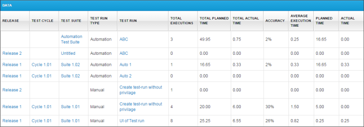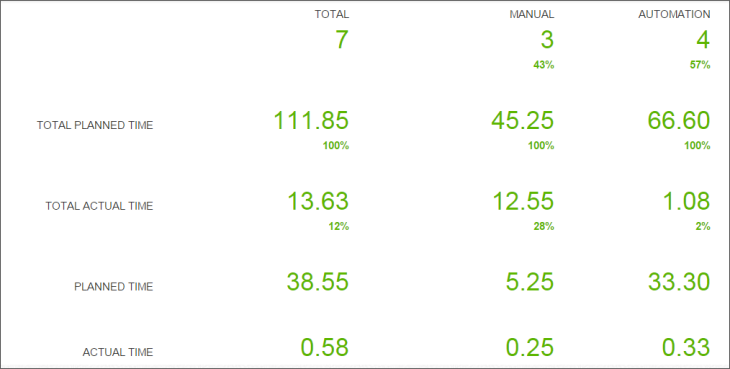 这份报告提供了一个汇总的时间测试执行到一个测试套件/ /循环构建/释放和计划之间的差异和实际时间。