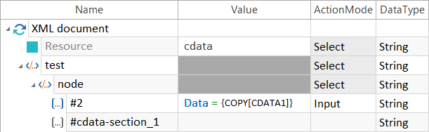 在这个例子中,第二个CData区域的CData元素复制到资源CDATA1。